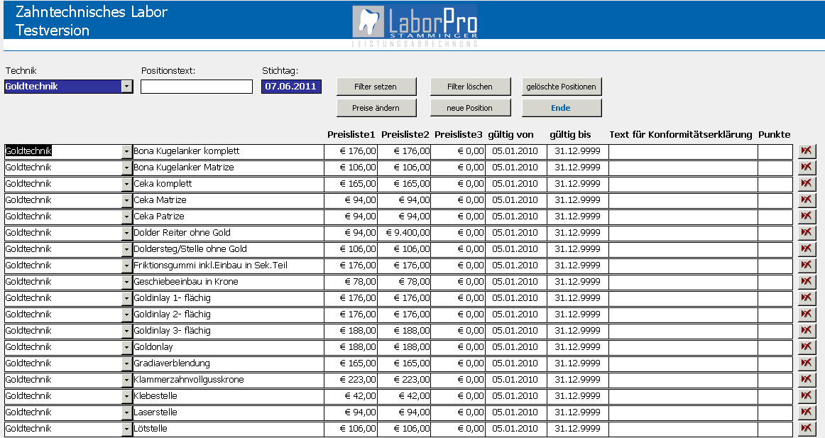 Preisliste, Preislistenpositionen, Preisänderungen hier organisieren Sie Ihre Preisliste: hinzufügen und löschen von Positionen durchführen von Preisänderungen |